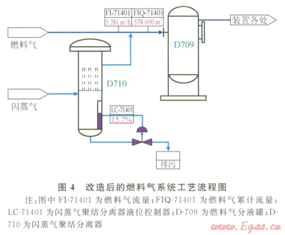 通過以上分析,閃蒸氣作為燃料氣并入燃料氣系統(tǒng)是可行的,但是為了避免燃料氣系統(tǒng)有大的波動,必須在工藝上改造優(yōu)化。