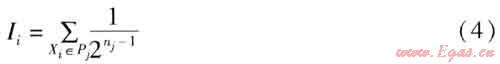 含有基本事件X1、X2、X3的最小徑集為1個,該徑集P3包含的基本事件數(shù)是18個,則由式(4)得基本事件X1、X2、X3的結(jié)構(gòu)重要度系數(shù)為: