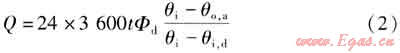 根據(jù)GB 50041—2008《鍋爐房設(shè)計(jì)規(guī)范》規(guī)定,鍋爐房冬季室內(nèi)溫度保持在12℃,排除余熱所需通風(fēng)量q的計(jì)算式為: