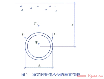 穩(wěn)定時管道承受的垂直荷載見圖l。由圖1可知,單位管長的垂直載荷F的計算式為:
