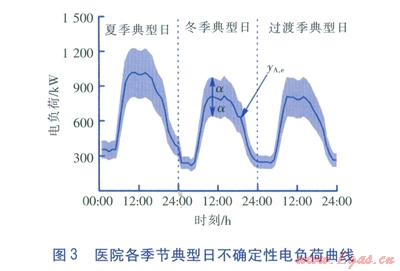 分布式能源系統(tǒng)的優(yōu)化配置對(duì)于獲得好的經(jīng)濟(jì)效益至關(guān)重要,而優(yōu)化配置又強(qiáng)烈依賴于用戶的各類負(fù)荷需求。目前在優(yōu)化配置中通常采用兩種負(fù)荷,一種是夏季、冬季和過(guò)渡季等幾種典型日的負(fù)荷預(yù)測(cè)值[7],另一種是全年逐時(shí)(8760h)負(fù)荷預(yù)測(cè)值[8]。但前者忽略了同一個(gè)季節(jié)內(nèi)負(fù)荷的差異;即使是基于后一種方法,現(xiàn)實(shí)中存在的氣象條件、內(nèi)擾不確定性,以及各能量預(yù)測(cè)供應(yīng)的對(duì)象、面積與實(shí)際運(yùn)行時(shí)的偏差,也可能導(dǎo)致聯(lián)供系統(tǒng)的設(shè)備投資浪費(fèi)或不足、經(jīng)濟(jì)效益無(wú)法充分發(fā)揮,極端情況下甚至?xí)霈F(xiàn)停運(yùn)的尷尬局面,上海黃浦區(qū)中心醫(yī)院就是典型的例證[9]。因此,考慮用戶負(fù)荷需求的不確定性,以增強(qiáng)分布式能源系統(tǒng)經(jīng)濟(jì)效益的魯棒性,是聯(lián)供系統(tǒng)優(yōu)化配置的現(xiàn)實(shí)需求。