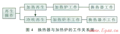 再生操作流程:再生氣(儲(chǔ)氣容器內(nèi)的干氣)經(jīng)調(diào)壓柜節(jié)流降壓后進(jìn)入加熱爐加熱,溫度上升至210℃左右,經(jīng)B熱進(jìn)閥從塔B底部進(jìn)入,與分子篩接觸傳熱,隨著分子篩溫度升高,分子篩吸附的水分及部分烴被再生氣帶走,逐步完成分子篩的再生。當(dāng)脫水塔頂部溫控儀溫度顯示為125℃左右時(shí),標(biāo)志加熱再生階段完成。隨后進(jìn)入脫水塔的冷吹再生階段,關(guān)閉加熱爐電源,繼續(xù)通干氣對(duì)分子篩進(jìn)行冷吹降溫,當(dāng)脫水塔頂部溫控儀溫度顯示為125℃左右時(shí),標(biāo)志加熱再生階段完成。隨后進(jìn)入脫水塔的冷吹再生階段,關(guān)閉加熱爐電源,繼續(xù)通干氣對(duì)分子篩進(jìn)行冷吹降溫,當(dāng)脫水塔頂部溫度降至40℃以下時(shí),分子篩恢復(fù)吸附能力,停止冷吹,脫水塔再生完成。再生氣經(jīng)脫水塔頂部排出,經(jīng)B熱出閥進(jìn)入冷凝分離器冷卻分離后進(jìn)入回收罐。