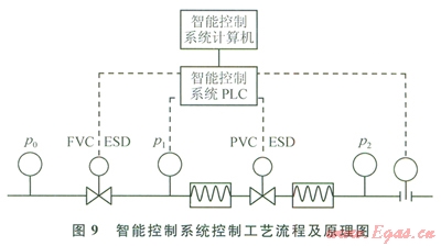 以計(jì)算機(jī)和PLC為核心組成智能控制系統(tǒng)[5-6],完成流量、壓力等的自動控制(圖9)。