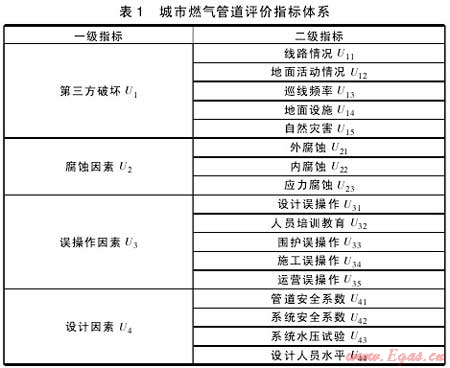 城市燃?xì)夤艿赖木C合評(píng)價(jià)指標(biāo)體系是對(duì)燃?xì)夤艿肋M(jìn)行風(fēng)險(xiǎn)評(píng)價(jià)的基礎(chǔ)。依據(jù)一套能夠全面反映燃?xì)夤艿老到y(tǒng)運(yùn)行狀態(tài)的評(píng)價(jià)指標(biāo)體系所作出的風(fēng)險(xiǎn)評(píng)價(jià)結(jié)果能夠真實(shí)地反映城市燃?xì)夤艿里L(fēng)險(xiǎn)狀況;能夠?yàn)槿細(xì)夤绢A(yù)防危險(xiǎn)事故的發(fā)生提供合理且有效的信息。可見構(gòu)建全面科學(xué)的評(píng)價(jià)指標(biāo)體系對(duì)于風(fēng)險(xiǎn)評(píng)價(jià)具有舉足輕重的作用,同時(shí)也能夠推進(jìn)城市燃?xì)夤艿老到y(tǒng)風(fēng)險(xiǎn)管理體系的建設(shè)。
