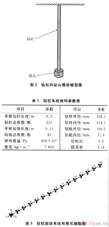目前國內(nèi)外專家對(duì)石油鉆井中鉆桿的失效原因、振動(dòng)特性等方面的力學(xué)機(jī)理進(jìn)行了研究[4~5],而深海大尺寸繩索取心專用鉆柱的受力與工作機(jī)理比石油鉆井用鉆柱更為復(fù)雜。因此需要全面深入的綜合研究。筆者主要結(jié)合當(dāng)前國內(nèi)外振動(dòng)理論方面的研究成果,從深海天然氣水合物鉆探取心的實(shí)際情況出發(fā),對(duì)鉆柱的振動(dòng)進(jìn)行模態(tài)分析,從理論上解決鉆柱的共振問題,以期對(duì)深海天然氣水合物的成功取樣提供幫助。