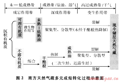 近年來的研究揭示南方、塔里木盆地的多元生烴轉(zhuǎn)化過程,認識到干酪根晚期成烴理論模式忽略了可溶有機質(zhì)對油氣田形成的貢獻,已證實再生烴源是中國高演化海相層系油氣富集成藏的重要來源之一,無論分散型還是聚集型都可成為油氣成藏的主要來源,如普光氣田有原油裂解氣的重要貢獻是基本共識。
