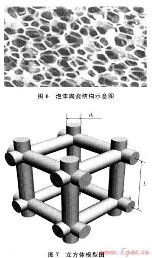 圖6為泡沫陶瓷結(jié)構(gòu)示意圖。泡沫陶瓷是相互貫通的骨架,可簡化為立方體結(jié)構(gòu)[16],如圖7所示。具體參數(shù)計算公式如下:
