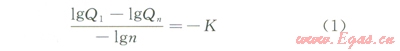 式中Q1為序號為1的氣藏的儲量規(guī)模,也即最大氣藏規(guī)模,l08m3;Qn為序號為挖的氣藏的儲量規(guī)模,108m3;K為氣藏規(guī)模的變化率,也即在雙對數(shù)坐標(biāo)上的斜率,無量綱;n為氣藏規(guī)模序列號。