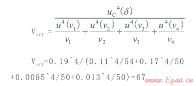 按照B類標準不確定度自由度計算,估計△u(v4)/u(v4)=0.1查表自由度為:v4=50