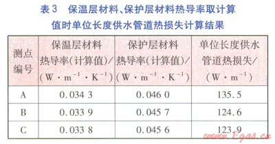 ①參與計(jì)算單位長(zhǎng)度供熱管道熱損失的保溫層材料、保護(hù)層材料熱導(dǎo)率,對(duì)計(jì)算結(jié)果影響較大。應(yīng)根據(jù)實(shí)測(cè)供水溫度對(duì)保溫層材料、保護(hù)層材料熱導(dǎo)率進(jìn)行求解,以計(jì)算準(zhǔn)確的熱損失。