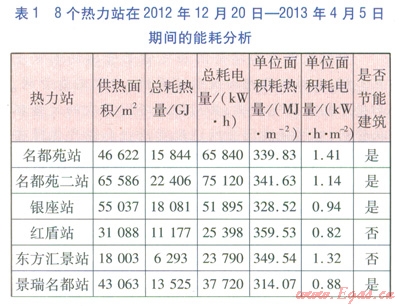 為了保證數(shù)據(jù)的可靠性,匯總了8個熱力站(均屬于即墨金源熱力公司)在2012年12月20日—2013年4月5日期間的能耗分析,見表1。從表1可知,大華正信熱力站耗熱量遠低于其他非節(jié)能建筑熱力站,且不高于節(jié)能建筑耗熱量的平均值;大華正信熱力站耗電量遠低于其他熱力站,耗電量約為其他熱力站的33%。