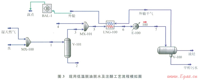 圖5為采用HYSYS軟件對(duì)改進(jìn)后注醇工藝流程模擬示意圖。