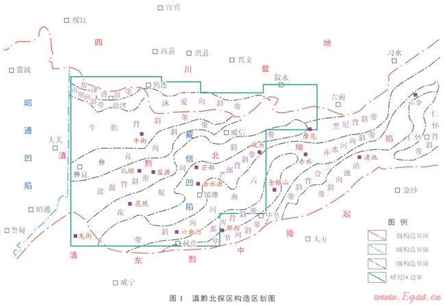 滇黔北探區(qū)地處三省交會的云南昭通、貴州畢節(jié)、四川宜賓和瀘州區(qū)域,大地構(gòu)造上屬于揚(yáng)子地塊構(gòu)造域西南邊緣的滇黔北坳陷,主體為威信凹陷的中兩部區(qū)域(圖1),其北側(cè)為四川盆地(海相古生界構(gòu)造臺坳)。