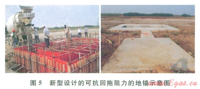 1)設(shè)計(jì)特殊地錨。通過(guò)計(jì)算回拖阻力,設(shè)計(jì)了專門(mén)針對(duì)大噸位回拖阻力的地錨(圖5),以抵抗大的回拖阻力。