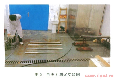 用以下實(shí)驗(yàn)方法研究多孔射流鉆頭自進(jìn)力的影響規(guī)律:①改變柴油機(jī)轉(zhuǎn)數(shù)的方法來調(diào)節(jié)泵排量,研究流量參數(shù)對(duì)射流鉆頭自進(jìn)力的影響規(guī)律;②更換多孔射流鉆頭的方法來改變射流鉆頭正反流量比,研究正反流量比參數(shù)對(duì)射流鉆頭自進(jìn)力的影響規(guī)律;③調(diào)節(jié)射流鉆頭與模擬井底之間的距離,研究正向噴距參數(shù)對(duì)多孔射流鉆頭自進(jìn)力的影響規(guī)律;④更換模擬井筒的方法來改變井簡(jiǎn)直徑,研究井筒直徑參數(shù)對(duì)多孔射流鉆頭自進(jìn)力的影響規(guī)律。