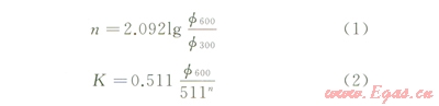 由于常規(guī)環(huán)空和小間隙環(huán)空中流體剪切狀態(tài)的不同,再用f300與f100的讀值進行計算必定產(chǎn)生較大誤差。因此,對小間隙環(huán)空采用旋轉黏度計f600和f300的讀值進行水泥漿流變參數(shù)n、K值(對冪律流體)的計算[4]。