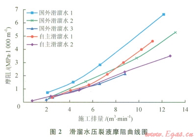 滑溜水壓裂液摩阻和成本均較低,其較之交聯(lián)凍膠更容易形成復(fù)雜的裂縫網(wǎng)絡(luò),滿足頁巖氣體積壓裂改造的工藝要求,成為頁巖氣體積壓裂改造的主要工作液。四川地區(qū)下寒武統(tǒng)筇竹寺組和下志留統(tǒng)龍馬溪組儲層段全巖分析和巖石力學(xué)實驗結(jié)果表明,該地區(qū)頁巖儲層巖石水敏指數(shù)弱[4]、脆性指數(shù)較高,低黏度滑溜水易進入次生微裂縫,從而產(chǎn)生復(fù)雜的網(wǎng)狀裂縫,形成最大化的增產(chǎn)改造體積。