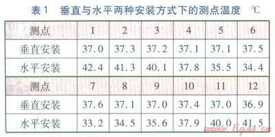 分別對垂直安裝與水平安裝的供熱管道進行測溫,截面設(shè)12個測點(見圖2),12個測點均勻分布,測點與絕熱層外表面的距離為20mm,所選擇的測溫截面的絕熱材料比較均勻。垂直與水平兩種安裝方式下的測點溫度見表1。由表1可知:對于垂直安裝供熱管道,l2個測點的平均溫度為37.18℃。對于水平安裝供熱管道,12個測點的平均溫度為37.85℃。對于兩種安裝方式,雖然測點平均溫度基本一致,但是水平安裝供熱管道測點l的溫度最高,比測點7的溫度高9.2℃,這說明水平安裝供熱管道的絕熱層熱導(dǎo)率有明顯的方向性。
