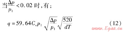 在計算通過調壓器的氣體流量時,根據調壓器進出口壓差,一般分3種狀態(tài)。