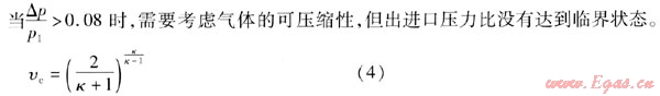 時,為亞臨界狀態(tài),必須考慮氣體的可壓縮性,否則引起較大誤差。為此需要考慮氣體密度的變化,引出氣體密度的膨脹系數,此時常用的公式為:
