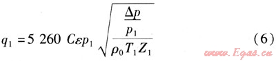 ① 不考慮氣體可壓縮狀態(tài)流量公式