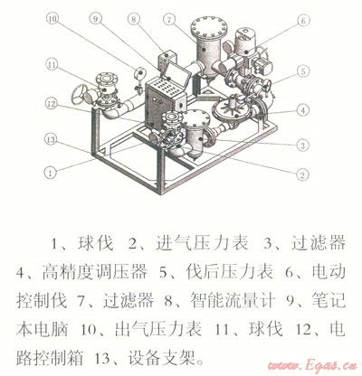 (1)、將“置換裝置”的進口端用高壓軟膠管及活接頭與氣源管道相聯(lián)通:出口端用高壓軟膠管及活接頭與球罐的進氣管道相聯(lián)通(此時球罐進氣管道應早已與原進氣源切斷開),其余應聯(lián)接的電路等各部份均聯(lián)接妥當。