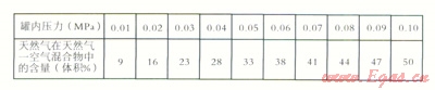 浸灌置換裝置研制時,是采用只混氣不置換,即用10份天然氣混1份空氣達劍蚩換的目的。應該說這是個創(chuàng)新、有價值的設想。有同行提出罐內(nèi)會形成三角形或平面形界面。理由是天然氣比空氣輕一半,天然氣凝聚在上,空氣凝聚在下,形成界面。罐內(nèi)天然氣、空氣永遠靜止有可能形成界面,實際情況是,置換過程中天然氣、空氣是在不停的流動、攪動,形成的是混合物。相當於煤礦瓦斯氣(甲烷約占50%,空氣約占50%),在運行過程中是不會形成界曲的。
