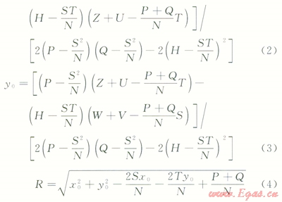 由此得到每個(gè)下凹曲管段的曲率中心和半徑計(jì)算式為: