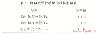 形成腔體模型后,需要對溶腔施加內(nèi)壓,通過施加法向應(yīng)力將儲氣庫內(nèi)壓分別設(shè)置為10MPa、15MPa、17MPa、20MPa、23MPa、25MPa和30MPa,選擇經(jīng)典黏彈性蠕變模型[8-9]計(jì)算在不同內(nèi)壓條件下溶腔不同直徑處的蠕變變形量。經(jīng)典黏彈性蠕變模型材料參數(shù)如表2所示。