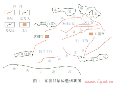 東營凹陷是隸屬于渤海灣盆地濟陽坳陷的次一級負向構造單元,屬于新生代形成的斷陷盆地,呈典型的北斷南超構造格局,北部為陡坡構造帶(又稱東營北帶),中部為洼陷帶和中央隆起帶,南部為緩坡構造帶(圖1)。