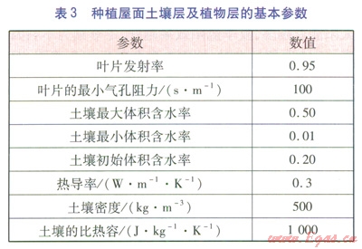 屋面的生態(tài)環(huán)境與地面明顯不同,受屋面自然條件的限制,太陽輻射、溫度、濕度、風力等隨著層高的增加而呈現(xiàn)不同的變化,因此屋面的參數(shù)優(yōu)化選取至關重要。種植屋面通過遮陽作用、熱阻、蒸騰蒸發(fā)作用來實現(xiàn)節(jié)能的效果。葉面積指數(shù)(簡稱LAI,是指單位土地面積上植物葉片總面積與土地面積之比,是一個無因次量)和植物高度影響植物的遮陽作用,屋面構造和土壤參數(shù)影響種植屋面的熱阻,土壤含水率和植物種類及特征影響蒸騰蒸發(fā)作用。