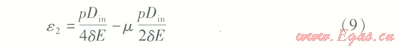 設(shè)定e2是由內(nèi)壓引起的管道軸向應(yīng)變,由于s3=0,由式(6)可得到由內(nèi)壓引起的管道軸向應(yīng)變e2的計(jì)算式為: