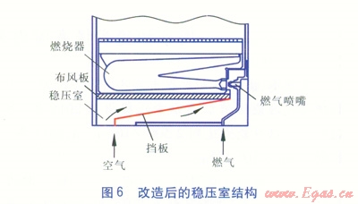 由風(fēng)機(jī)送入的空氣需要通過穩(wěn)壓室、布風(fēng)板進(jìn)行均勻布風(fēng),以保證燃?xì)庖豢諝饣旌衔镌诨鹋派险H紵?。燃燒器?nèi)空氣與燃?xì)獾木鶆蚧旌?,能夠避免燃?xì)馊紵煌耆^而產(chǎn)生有毒有害物質(zhì)的現(xiàn)象,從而提高熱水器安全性能。