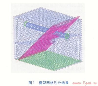 設(shè)定單元類型:定義管道為殼單元:shell element,巖土定義為三維實體單元:3D solid element,斷層處不設(shè)單元。設(shè)定材料屬性:a.鋼材彈性模量為2.07×105MPa,泊松比為0.29,密度為7800kg/m3。b.巖土分層情況為:上層為砂黏土,下層為石灰?guī)r,將巖土的特性參數(shù)輸入ADINA,管道位于砂黏土層。單元類型、材料屬性完成設(shè)定后,采用ADINA-M選單下的Parasolid建立幾何模型,用切片Sheet和體修改器Body Modifier對幾何體進(jìn)行修飾。切片Sheet用于切出斷層,體修改器Body Moditier用于將斷層與巖土分開。最后通過ADINA中的布爾操作(Boolean Operator)實現(xiàn)管道與巖土、斷層之間的融合。