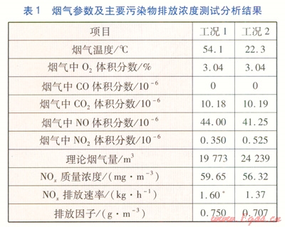 表1中,兩個工況下的煙氣采樣分析結(jié)果是以煙囪總出口處(C點)的數(shù)據(jù)進行對比分析。表1中*為折算值,是將工況1的NOx排放速率折算到與工況2供應(yīng)相同的供熱量條件下的NOx排放速率。表1中排放因子定義為每1m3天然氣燃燒后排放的NOx的質(zhì)量??梢钥闯?,同樣消耗1m3天然氣,工況2比工況1排放因子減少了5.73%。