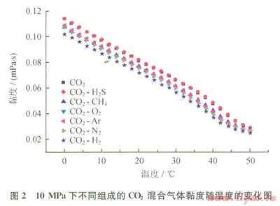 從圖2可以看出,雜質(zhì)通常會使CO2混合氣體黏度降低。