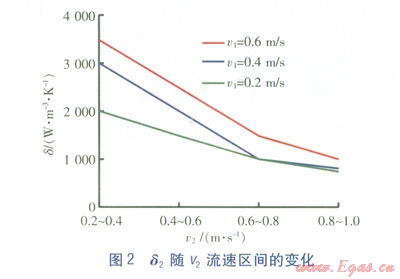 在v1一定的條件下,總換熱系數(shù)絕對(duì)變化率d2的計(jì)算式為: