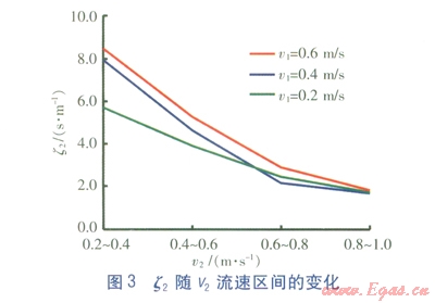 式中z2——在v1一定的條件下總換熱系數(shù)相對(duì)變化率,s/m