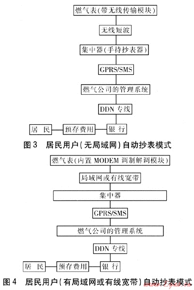 由購(gòu)買(mǎi)氣量改為預(yù)存費(fèi)用,預(yù)存費(fèi)用的數(shù)值保存在燃?xì)夤镜臄?shù)據(jù)管理中心,以便根據(jù)燃?xì)鈨r(jià)格實(shí)時(shí)調(diào)整,避免燃?xì)鈨r(jià)格上漲前用戶(hù)囤氣給燃?xì)夤編?lái)?yè)p失。此方式綜合了國(guó)外的先進(jìn)技術(shù)和我國(guó)的國(guó)情,將成為我國(guó)城鎮(zhèn)燃?xì)饩用裼脩?hù)、商業(yè)用戶(hù)今后計(jì)量收費(fèi)的發(fā)展趨勢(shì)。對(duì)于其他不適合預(yù)付費(fèi)方式的城鎮(zhèn)燃?xì)庥脩?hù),今后發(fā)展的趨勢(shì)是自動(dòng)抄表。