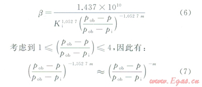 式中qsc為標準狀況下氣井產(chǎn)量,104m3/d;h為氣層射開有效厚度,m;`m為平均地層壓力及溫度下氣體的黏度,mPa·s;`Z為平均地層壓力及溫度下氣體的偏差系數(shù);rsc為標準狀況下氣體密度,g/cm3;T為地層溫度,℃;Tsc為標準狀況下溫度,℃;psc為標準狀況下壓力,MPa;pob為儲層上覆壓力,MPa;pi為儲層原始地層壓力,MPa;pe為儲層目前地層壓力,MPa;p為泄油半徑處地層壓力,MPa;pwf為井底流壓,MPa;r為徑向半徑,m;re為泄油半徑,m;rw為井筒半徑,m。