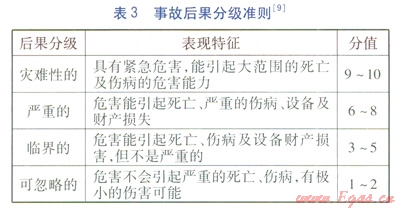 可能性分級準則見表2,事故后果分級準則見表3。