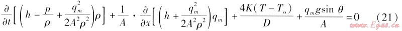 如果單位時(shí)間內(nèi)輸氣量的波動(dòng)較大,就需要考慮動(dòng)量方程中的慣性項(xiàng),上述式(7)、(8)就變成如下形式: