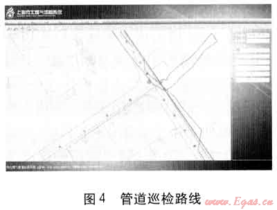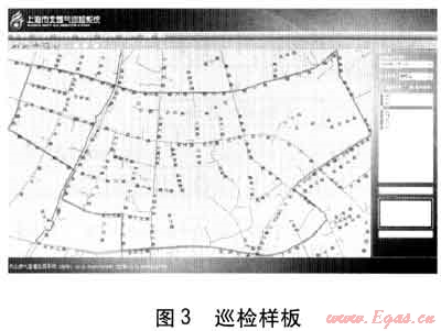 巡檢前,管理人員選擇要巡檢的樣板和巡檢的日期,制定巡檢任務(wù)。巡檢人員只需根據(jù)當(dāng)日巡檢任務(wù),選擇要巡檢的樣板,即可了解當(dāng)天所要巡檢的地區(qū)范圍及其所包含的管道。圖3中所示區(qū)域是當(dāng)天的巡檢樣板。