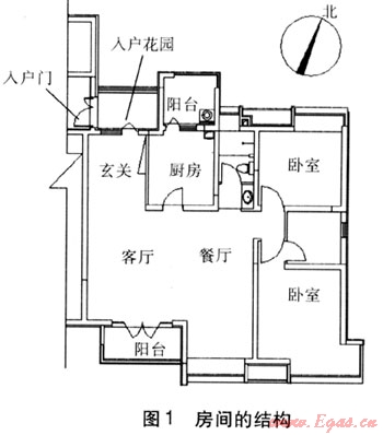 本文以某居住建筑為實例進行分析計算,該建筑各層層高為2.9m,共13層,房間的結(jié)構(gòu)(另一側(cè)為對稱結(jié)構(gòu))見圖1。該居住建筑按照2007版的建筑節(jié)能標準設計,其設計節(jié)能率為65%,合理使用年限為50年。建筑面積為5083.2m2,建筑體積為14741.28m3,建筑表面積為4189.98m2,窗墻比分別為:南向0.45,東向0.11,西向0.11,北向0.24。