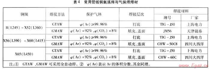 表3 常用管線鋼焊條電弧焊的焊接材料
