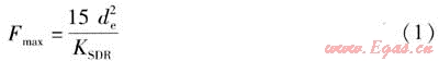 規(guī)程的公式過于簡單,公式表示Fmax僅與PE管材的公稱外徑de及標準尺寸比KSDR有關(guān)。修正后的公式相對復雜,增加了σMRS和C兩個變量,這就克服了規(guī)程公式的不足之處,可以充分體現(xiàn)PE管道性能及總體設計系數(shù)的差異性。