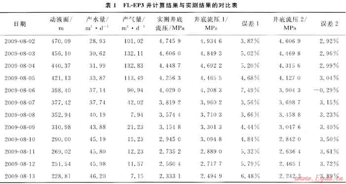 3) 柳林地區(qū)FL-EP3實(shí)際應(yīng)用結(jié)果表明,通過(guò)對(duì)比采用Hasan-Kabir推導(dǎo)的解析方法計(jì)算的井底流壓和根據(jù)修正公式計(jì)算的井底流壓,得出修正公式計(jì)算的結(jié)果與實(shí)測(cè)的壓力值較接近,誤差在4%以?xún)?nèi),可靠度更高,且根據(jù)修正公式計(jì)算的井底流壓和通過(guò)試井測(cè)得的幾個(gè)特殊測(cè)試點(diǎn),可以確定生產(chǎn)壓差。