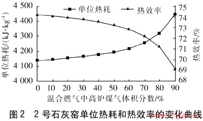 3 混合燃氣對石灰窯熱耗和熱效率的影響