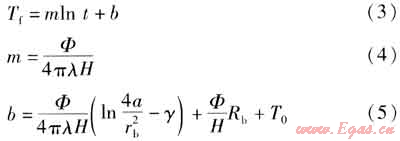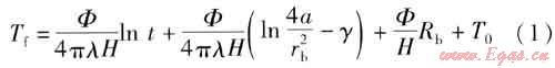 根據(jù)線熱源理論,埋管內(nèi)流體的平均溫度計(jì)算式為: