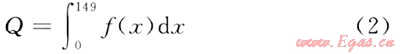 式(1)具有便于積分的特點(diǎn)[6],這150d的累計(jì)氣量(即圖3中曲線與x、y軸之間所圍成的面積)可表示為: